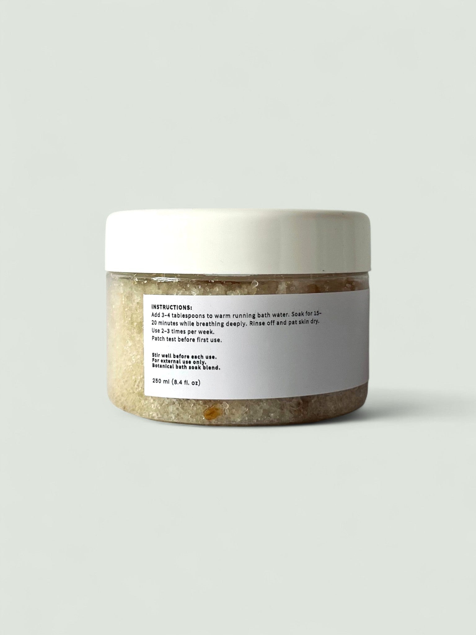 This bath soak blends mineral salts with nourishing oils and floral botanicals to soothe, hydrate, and awaken the senses. Each soak becomes a mindful ritual — a pause to relax, restore, and immerse in the gentle beauty of blooming florals.