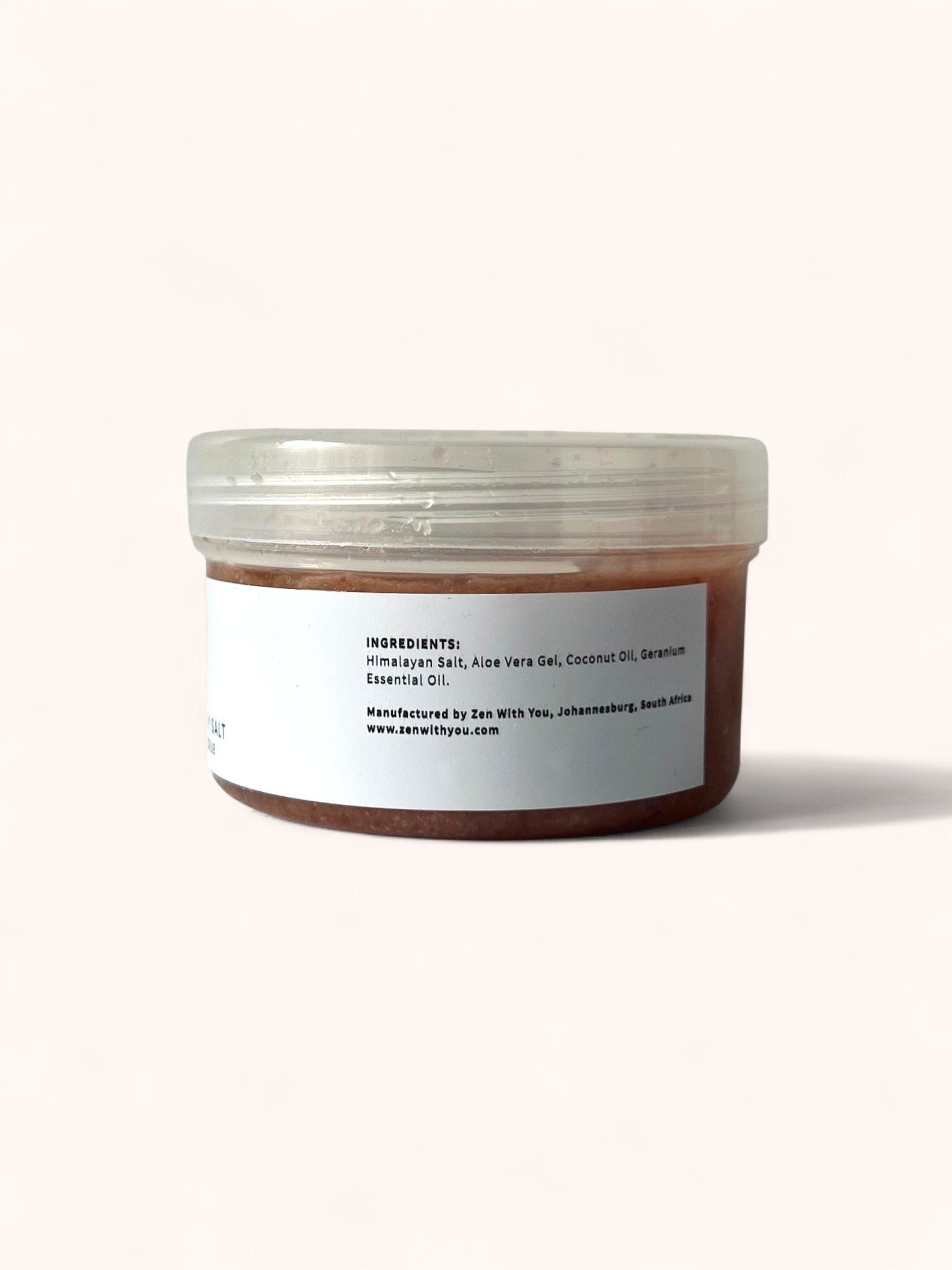 Himalayan Salt, Aloe Vera Leaf Gel, Coconut Oil, Geranium Essential Oil.